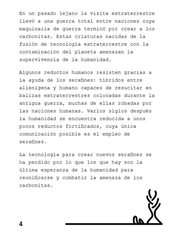Los jugadores serán Serafines luchando contra el ambiente, las criaturas extratemporales y los temidos carbonitas; nacidos de la avaricia humana del pasado. Deberán ayudar a los refugios humanos a sobrevivir en un mundo hostil hacia la humanidad pero fértil, azul y verde.
